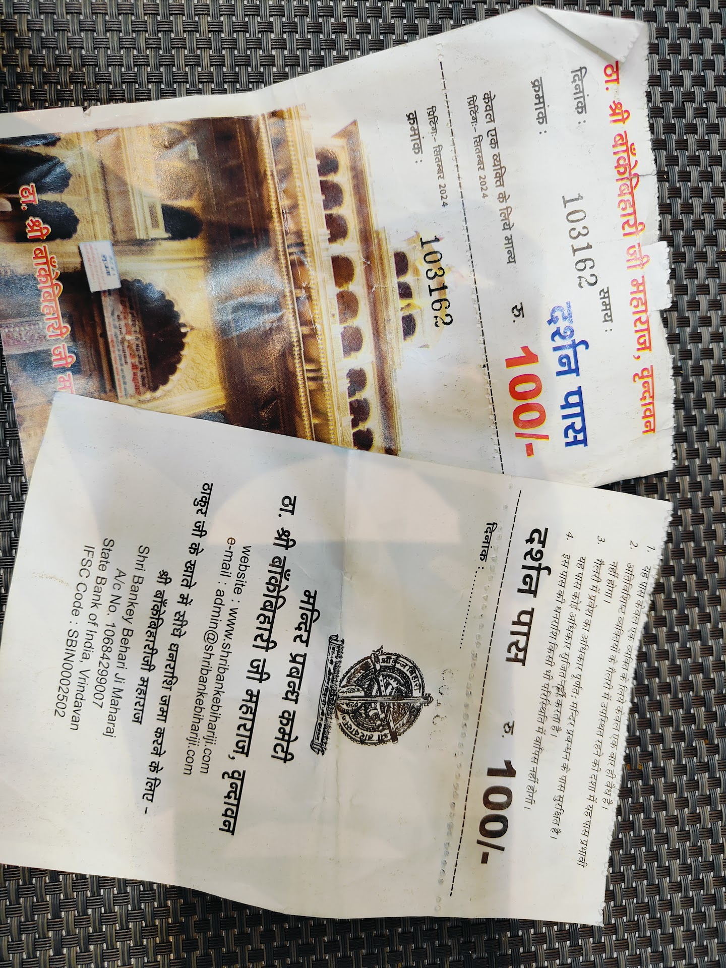 Read moreThe fact that it's a holy place automatically nullifies the need to be rated by anyone. Yet, we should write our reviews to help other devotees who wish to get blessings from lord Krishna and know about the arrangements to reach this mighty place. The one star less is for the administrative flaws that really need a push for the wellbeing of the thousands of people who reach here every day. Following are the views of common people, who literally got squeezed in the crowd today, inside the temple, due to mismanagement and negligence by the authorities. Though there are separate doors for the entry and exit (2 each), the crowd entering from both the doors gets mixed in between and the criss cross to reach the centre for darshan of the deity, ruins one's experience. The people coming from the right entrance and moving towards the centre to exit from the left push the crowd coming from the other side and vice versa. And this churns everyone! The experience gets even worse and difficult for children and elderly. This is not it, after the entry and all the struggle if someone manages to reach the stairs for nearer darshan, the security personnel (who are mere spectators for the mishappening at the centre, just two steps away from them) would push people to force towards the exit, or try to separate the men and women (suddenly trying to save people who already suffered and reached nearer to the deity on their own after passing all the push and pull from the mixed crowd!). There are many temples who get more footfall than they get here, but simple arrangements of proper one way traffic flow makes everything hassle free. This needs to be applied here as well, not just for the experience but for the safety also. As what we saw today (in a non-peak hour and no festival and no holiday day) was just a millimetre away from a stampede. Now about reaching the temple. The vehicles were stopped almost 2.5 km away and everyone was forced to either take another means of commute (electric rickshaw) or walk. Then the footwear was forcefully asked to be dropped a km away from the temple (for the first time visitors- you don't really need to follow this). Other tips for first time visitors: Do not fall into the trap of VIP darshan. They will demand anything between ₹100-₹500 per person and drop you in the end of the entry queue (which is not a big deal to pass) to survive the crowd and hand over the pass to the pandits standing near the stairs to get you the darshan from near. We had the passes in hand and waved towards them to let us near but nobody cared. You really do not need any pass, if you can survive the aggressive crowd and manage to reach the front stairs. Attaching the pictures of the passes which were of no use. The prasad, flowers and garlands (phoolon ki maala) which are being sold for kilometres along the way to the temple, are nowhere being offered to the deity. Whatever you hand over to the pandits (if you manage to reach there) they will simply pass it on to someone standing next to you, or shower everything to the crowd at the centre, WITHOUT OFFERING TO THE DEITY. You will need to walk barefoot for miles to reach the temple and reach your vehicle on your way back, so practice walking if you are not used to it before coming here. There are no signboards or small street (gali) markings. And the security personnel outside the temple (remember, there is no one to manage the crowd inside the temple, but they are everywhere outside showing that they are managing everything) may close any street anytime. So don't depend on the way with which you managed to come in. Instead remember the directions, names of the shops, any possible landmark, with which locals can help you reach...