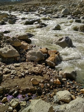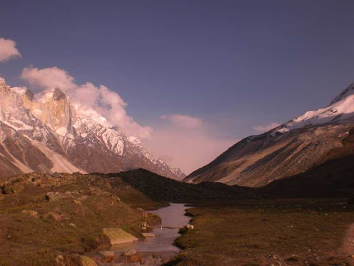 Gomukh, also known as "Gaumukh" or "Gomukhi" is the terminus or snout of the Gangotri Glacier and the source of the Bhagirathi River, one of the primary headstreams of the Ganges River. .......The place is situated at a height of 13,200 ft (4,023 m) in Uttarkashi district in the state of Uttarakhand, India....... It is one of the largest in the Himalayas with an estimated volume of over 27 cubic kilometers. It is a popular Hindu pilgrimage site, along with Gangotri, as well as trekking destination.......m On 26 July 2016, following heavy rains in Uttarakhand, it was reported that the front end of Gomukh was no more, as a large chunk of the glacier had collapsed and was washed away... In 2013, due to cloud burst in Uttarakhand, huge cracks had emerged on the glacier.......Gomukh, "Mouth of a Cow", the snout of the glacier along the river...The word "Gomukh/Gaumukh" literally means "Mouth of a Cow." According to some sayings, earlier the snout exactly looked like the "Mouth of a Cow.".......A small shrine at Gaumukh, Gangotri glacier......Gomukh is mentioned in the Puranas. ....It is said there that searching a lost sheep a shepherd boy reached near a glacier in Gangotri, the snout of which exactly looked like the mouth of a cow, and thus it got its name 'Gomukh'..... From then many saints, holy travelers, as well as religious people went there to worship the place.....Gomukh, terminus of the Gangotri glacier. The Bhagirathi peaks rise in the background.......Gomukh is 18 km from Gangotri in the foot hills of Bhagirathi at a height of 4255m. It is the snout of the Gangotri Glacier.,....... The Bhagirathi river here is pretty speedy. Around the snout, nature presents a wild topography..... There are boulders scattered here and there with some pieces of broken snow, along with the hard clayey snow of the glacier. The Gomukh snout is rapidly moving backwards. .....According to the modern research the snout has moved 1 km in just 70 years......The first and foremost thing for Gomukh trek is that you must have permission from (D.F.O.) District forest officer, Uttarkashi. Only 150 permits are issued per day, permission can be taken via fax also. The trail to Gomukh begins from Gangotri, about 18 km (11.2 mi) from Gomukh........ It was heavily damaged by rockslides by the 2013 North Indian Floods as was road access to Gangotri. 9 km ahead of Gangotri is Chirbasa, the abode of Chir trees. After 3 km of Chirbasa comes the dangerous Gila Pahar, the place well known for its landslides even prior to the 2013 destruction of much of the trail here; near-sheer cliffs down to the river must now be traversed. Here the Bharals, a type of mountain antelope are sometimes seen. .....The Bharals are found above the altitude of 10,000 ft. Only 4 km from here is Bhujbasa, the only night halting place on the way with buildings. .....One can stay at the GMVN Bunglow, or at the Lalbaba's Ashram or at Ram Baba's ashram; both ashram charge Rs 300 for a day that includes lodging and food. ....After trekking 41/2km from Bhujbasa, one reaches Gomukh, the snout of the Gangotri Glacier.A little before Gomukh, the majestic view of Mt. Shivling welcomes the trekkers to the place.....m On the trail no horses are allowed, so one must take preparations to walk on foot. The trek to Tapovanan and Nandanvan starts from here.....The route after 'Bhojbasa' can be quite difficult, more so since the 2013 floods. One has to cross a boulder zone to reach the Gomukh snout. The trek beyond Gomukh is quite difficult...... Crossing the glacier & going towards Tapovan has become quite dangerous nowadays (because of the landslides). There is no track and one must have a guide and should be prepared to face any type of accident which can even be a life-threatening one. The last climb to reach Tapovan is very stiff, within 2 km a climb of around 1500 foot and is quite a challenging...