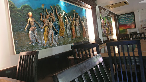 It's basically a white coloured Temple and Guest House. Just outside the entrance of the Main Temple Hall is a Bueatiful Black Stone Deity of Sri Garudaji. In the Spacious Temple Hall, is the Deity of Iskcon's Founder Acharya - His Divine Grace A.C. BhaktiVedanta Swami Srila Prabhupad. The Main Temple Hall Alter has the Bueatiful Deities of - Sri Gaur Nitai, Sri Radha Govindji and Sri Jagannatha Baladev Subhadramai. On it's right side, and outside the Main Temple Hall, is another Temple having Sri Sita Ram Luxuman Hanuman Deities. Hanumanji's Deity is particularly very Bueatiful.