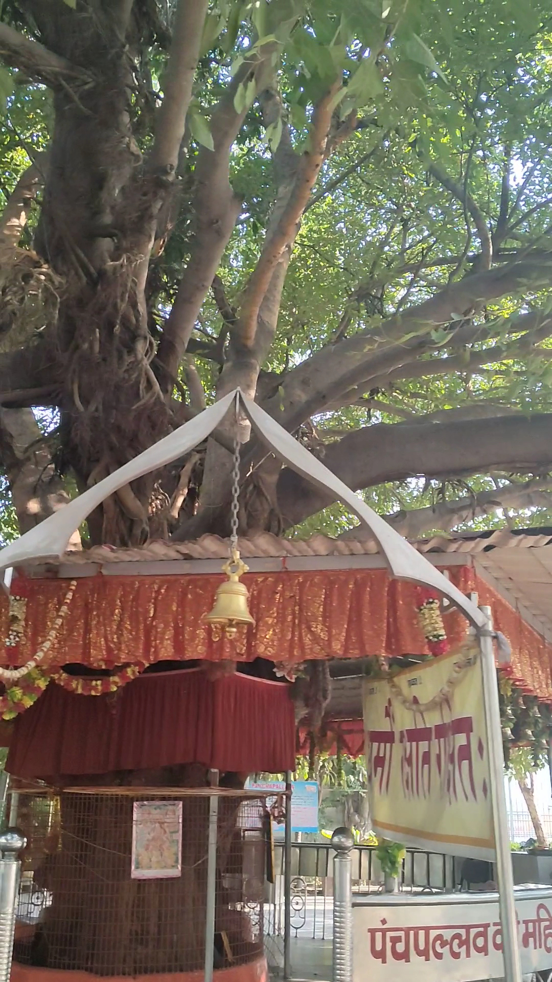Another notable feature is the sacred Panch Pallav tree, where five different trees—vata, pipal, pakar, mango, and gular—grow together from a single base. The leaves of this ancient tree are considered auspicious and are used in religious rituals. Symbolizing the five senses, the five leaves of Pancha Pallav are placed atop a water vessel during puja, representing the divine feminine energy.