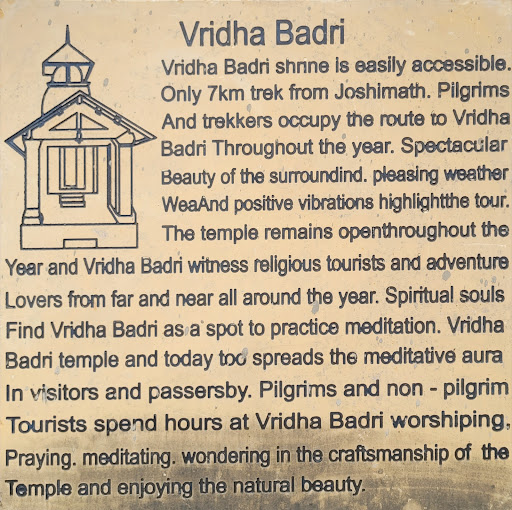 Read moreThe Vriddha Badri temple is a Hindu temple dedicated to Lord Vishnu, which is one of the Pancha Badri temples. Other four are Vishal Badri, Bavishya Badri, Yogdhyan Badri, and Adi Badri. This temple is easily accessible from Joshimath as its located just 7 km away at Animath on highway. The Vriddha Badri temple is located at an altitude of 1380 meters. We visited this temple while coming back from Kalpeshwar Mahadev temple trip. The Statue of Lord Vishnu is established as an old man, hence the name of this temple is Vriddha Badri. Vriddha Badri temple remains open throughout the year and Brahmins from south India serve as Chief priests in...