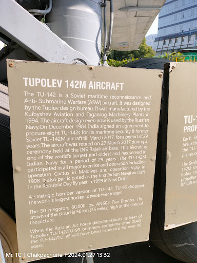 History of Aircraft Museum, Kolkata The TU-142 is a Soviet Maritime Reconnaissance and Anti-Submarine (ASW) Aircraft. It was designed by the Tuplev Design Bureau. It was manufactured by the Kuibyshev Aviation and Taganorg Machinery Plants in 1994. This Aircraft design is used by the Russian Navy still today. On December 1984, India signed an agreement to procure eight TU-142s for its maritime security from former Soviet Union till March 2017, for a period 29 years. The aircraft was retired on 27 March 2017 during a ceremony held at the INS Rajali Airbase. This aircraft is one of the world’s largest and oldest and has served in Indian Navy for a period of 29 years. The TU-142M Participated in all major exercise and Operation Cactus in Maldives and Operation Vijay in 1998. It also Participated as the first Indian Naval aircraft in the Republic Day Fly Past in 1999 in new Delhi. When the Russian Air Force decommissions its fleet of Tuplove TU-142/TU-95 bombers sometime after 2040, the TU-142/TU-95 will have been in service for...