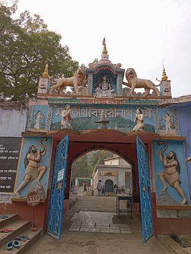 A spacious shrine of lord Shiva on the foothills of Biharinath hill adjoining Shivganga pond, a heritage big tree, standing since thousand years. The place is not so popular and not so loud, it's free from the clatter and pollution of the city – fills the mind with an indescribable joy, Greenness of the hills, twittering of innumerable birds, float the mind into a deep spiritual dimension. It's an old temple. People come here through places for marriage purposes. It's a very auspicious place for villagers.