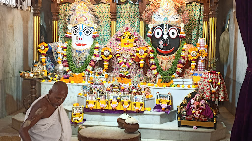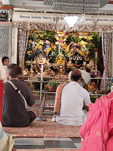 In mayapur it is situated in Rajapur near ISKCON temple.This is the place where Lord Jagannath dev resides with his elder brother Balabhadra and younger sister Subhadra devi. Here lord Jagannath dev appear to mercy specially his devotee Jagadish Mishra and merciful lord mercy us too that's why we can go and get darshan of lord in Rajapur temple, Mayapur. In Chaitanya dev's time Jagadish Mishra being a devotee of lord can't go to Puri dham with other devotee.As he became blind as well as old.Inabilty of going Puri Dham to see lord with other devotee he became very sad,ardently crying and decided give up hi life.On that night in sleeping lord appeared to him and told him that next morning while he took bath in river Ganges a wooden log will come and he has to took that log and will have to the carpenter ,who live in the next village near of his area ,and the carpenter was a leprocy patient it's also fortel by God. Lord also told that gave him the log to carve my deity and after completing you installed my deity and worship me as the lord of Nilachal Dham (Jagannath dham, Puri) as As lord fortold, a big log floating come an touch the body of Jagadish Ganguly while he was bathing in river Ganges.upon touching the log he regain his eyesight.by the help of villagers he take the lig near the carpenter. But the carpenter telling as a leprosy patient he couldn't but Jagadish Ganguly assured him that only he could as it was lord's decision. After that that carpenter started carving,while he started his work is leprosy disease cured gradually.after curving completed Jagadish Ganguly with some devotee installed lord's transcendental form of there lord Jagannath Balavadra and Subhadra .a d performed their service sincerely and blissfully. From that day today also the worship is still being continued .and here many more lila performed by the lord with devotee which also being continued today also. Special ceromony is at the time of Snan yatra and Rathayata... and the other times also lord give his darshan to devotee .Here a shiv temple also situated in this area and Simantini mata (maa mahamaya)temple also situated just beside the other side of the pond which is near the Jagannath temple .It's a life long opportunity to get darshan of lord Jagannath dev and his temple. Beautiful maintained area.and so calmness of the area you can concentrate your heart to the chanting of the holy name of lord easily.also do pradakshin to the lord .It's a special memory. šJai Jagannath Balavadra and...