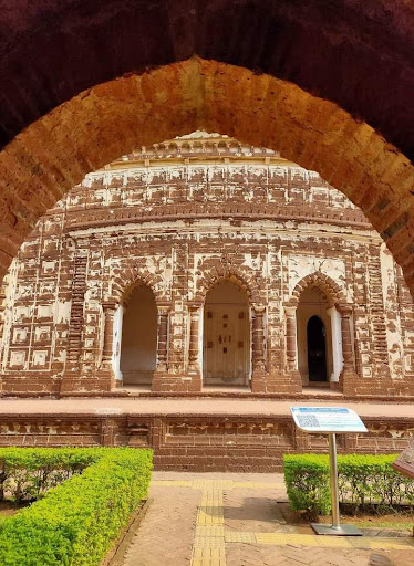 It's one of the standout laterite temples in the ancient town of Bishnupur. The marvelous inscriptions and delicate architecture on the outer & inner walls of the temple are bound to take your breath away. This temple is situated right under the eyes and supervision of the ASI (Archeological Survey of India), because their regional office is located inside the garden compound of this temple itself. Photography is allowed, but videography is prohibited here. Being a revered heritage site of Bengal, please keep this area clean...