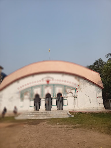 This flat roofed temple with Ek Bangla ( or Dochala ) porch was built by Indra Narayan Choudhary in 1740 A.D. Afterwards during Anglo-French war , the temple walls were damaged by cannonball.