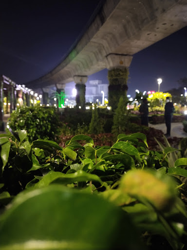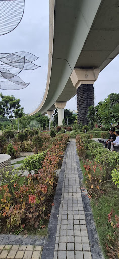 🌿 Planning & Features The plaza blends landscaped gardens, vertical greenery, decorative plants, and gazebos under the Metro track, enhancing the urban aesthetics.