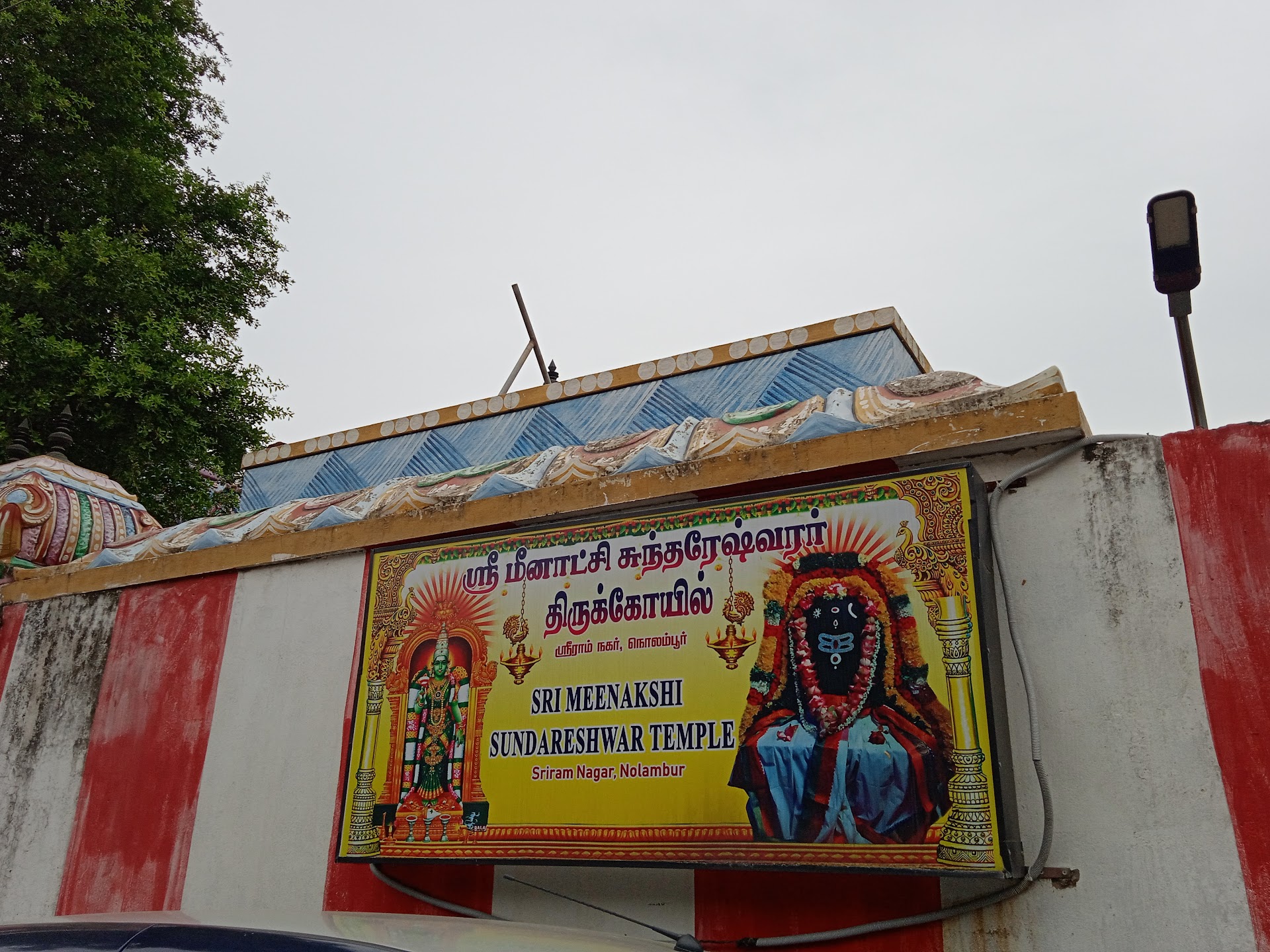 Sri Meenakshi ambal sametha Sri Sundareswarar temple, Nolambur,Chennai Moolavar : Sri Sundareswarar Consort : Sri Meenakshi Some of the salient features of this temple are, The temple faces east, with an entrance arch. Shiva with Parvati as Sundareswarar and Meenakshi Marriage along with Nandi playing Mridangam, Maha Lakshmi, Maha Vishnu, Saraswathi Vinayagar, Naradar, Brahma conducting the velvi, stucco image is on the top of the entrance arch. Ambal is in a separate sannidhi facing east on the right side of the Moolavar Temple. Ambal’s various forms are in the Koshtam. Since the temple’s layout (like Potramarai Kulam, Vibhuti Vinayagar, etc), the Construction of the Sanctum Sanctorum is followed like Madurai Meenakshi Amman Temple, and the legend associated with the Madurai temple is also told in this temple. Hence, some of the festivals are also conducted similarly to the...