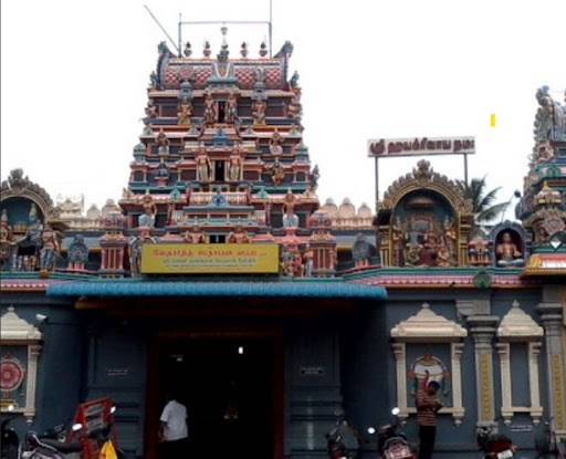 The temple is facing east with a small 3 tier Rajagopuram. Palipedam and Dwajasthambam are in front of the sannadhi under the mukha mandapam.