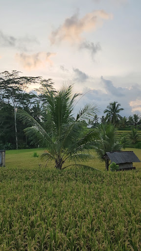 If you want to start from the southern end, look for 'Warwick Ibah Luxury Villas & Spa' from the main road (Jalan Raya Ubud). The path to the track just on the left side of the Villa gate. It is a steep slope down and, if you are on a (rented) scooty, there is (free) parking space on the left side of the slope. One can go walk further down the slope and there will be a signboard directing you to turn right to start the track. On the walk up north, you will also get a nice view of Mount Batur on the right side on the track. At the end of the northern track, there are plenty of cafes but most of them were yet to open by 7:30AM.