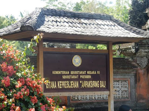 Presidential Palace Tampaksiring Bali. This is one of the Presidential palaces in Indonesia. Which is located in high land of Tampak Siring area. The area is so wide with acre of garden with beautiful and sturdy building. Well this place is so nice and peaceful, slightly you can hear from far the sound of traditional Bali music instrument called Gending. The most part I like is a backyard terrace, besides looks so good and also you can see all around widely. A green area, there're some Hindus Pura in the distance. Villages and Tirta Empul down there. This palace is not really a tourist area but still officially as a resting area for President and the family and for other state events. You may come to visit this Palace of course with special permit and limited number of persons in group allowed...