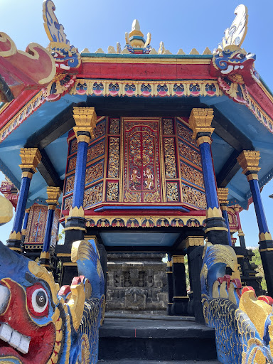 A stunning temple located at a cliff side near the ocean. The decoration mixes Balinese and Chinese influences. A lot of monkeys are roaming around so watch out for your belongings. You make a pay as you wish "donation" (average donation I saw was around 20-30K IDR/pax) and get a sarong and sash. You can take pictures in the temple. Me and my girlfriend we escorted by two Balinese kids with stick to protect us from the monkeys. The temple itself is very nice I highly recommend...