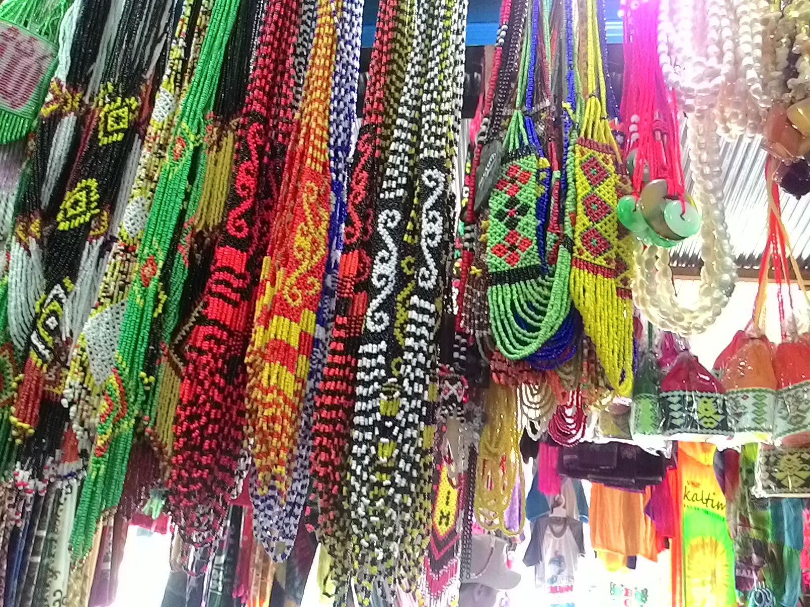 Yang agak murah biasanya pernak pernik berupa manik-manik yang dirangkai jadi kalung atau gelang. Anda bisa beli satuan, lusinan atau kodian. Makin banyak beli makin banyak kortingnya. Cocok untuk oleh-oleh pulang kampung, bisa dibagi satu RT.