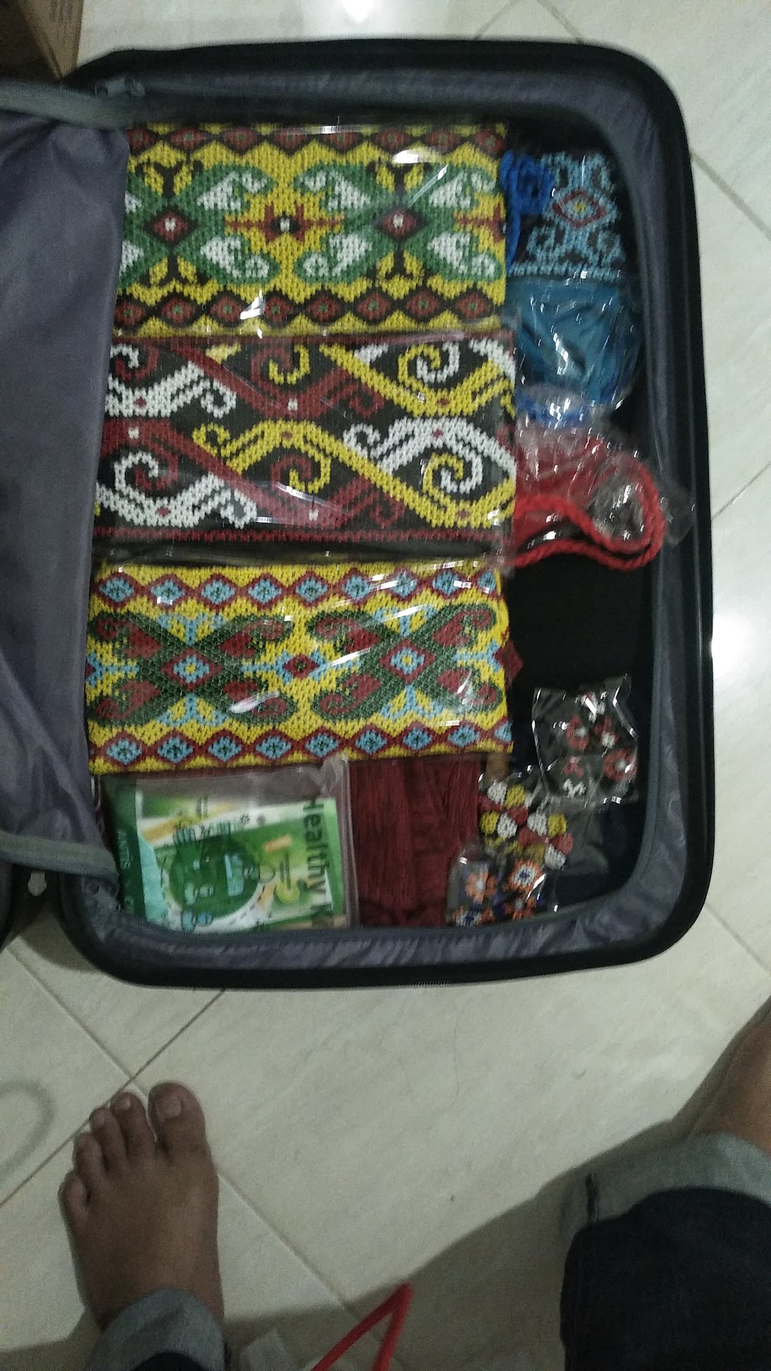 Lengkap sih lengkap, pokoknya komplit. Anda mau cari sarung sutra Samarinda, ada. Baju dan kaus motif batik Kaltim, ada. Kain sasirangan banyak.