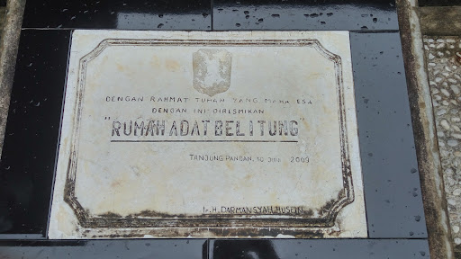 Rumah adat Belitung ini mulai dibangun pada tahun 2004 dan diresmikan pada tahun 2009 oleh Bupati Belitung Darmansyah Husain. Suasana kayu sangat terasa ketika berada di dalam rumah adat ini. Hampir semua bagian dari rumah adat ini terbuat dari kayu bulin yang terkenal kuat...