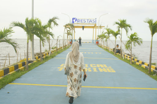 Kamis 3 April 2025, di saat libur lebaran saya, istri dan ke dua anak saya coba berkunjung ke Pantai Prestasi sekedar hanya ingin tahu. Masuk dari pintu belakang komplek BP2IP, sudah ada pos penjaga yang dengan ramah menginfokan jika tiket masuk Rp 10.000 / orang dewasa, jadi kami berempat hanya bayar Rp 20.000. Kami pun langsung ketempar parkir dan GRATIS biaya parkirnya.