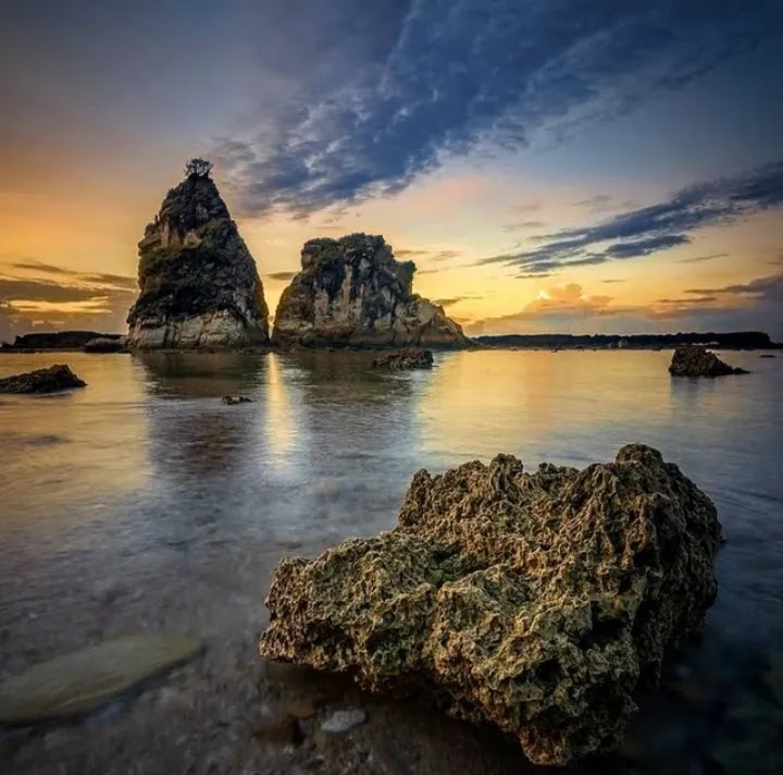 Tempat dengan pemandangan yang bagus jika kita melihat ke atas.. Tapi saat kita melihat ke bawah(pasir) itu ada aja sampah yang berkeliaran.. foto" ini di ambil disaat hari senin, yang sudah pasti tidak ramai.. . Orang yang belum pernah ke sawarna mungkin akan tergoda dengan review bintang lima dari temen" local guide atau orang" yang sudah kesana.. tapi ini masalah selera dan yaaa, bintang 4 mungkin cukup untuk menggambarkan susasana disana. . Untuk perjalanan saya sarankan untuk berangkat pagi, jangan siang/sore (tergantung lokasi anda dengan sawarna) kalau rumah kalian jauh dari pantai ini, lebih baik berangkat pagi.. kenapa? . Karna di sepanjang perjalanan nanti menuju pantai tersebut, kalian akan melewati semacam hutan gitu, dan jika diliat" sekitar itu cukup rawan jikalau sudah malam.. karna disana tidak ada lampu di pinggir jalan, jadi bener" gelap. . Dan saat sampai di pantai jujur saya kaget dengan keindahan pantai tersebut, dan saat sampai spot karang barulah rasa kagum tersebut mulai goyah. Mungkin sampah nya gak terlalu banyak, tapi ada.. dan pasir nya bala banget bisa di lihat di foto" tersebut.. . Dan untuk kalian yang ingin nginep disini, disini banyak banget tempat" untuk stay, buat naro" barang kalian.. dan harga nya pun relatif murah.. dari tempat seperti rumah panggung/rumah yang berAC juga ada. Dan saya saranin buat milih tempat yang WC nya di dalem.. kenapa? Karna lebih enak dan tidak bayar.. kalian tawar aja ke mas/mba nya disana.. bisa kok ditawar 👍 . Pantai ini (mungkin) akan nikmat disaat ramai.. kenapa? Karna saat itu kita dateng hari senin yang sudah pasti sepi dan hanya orang" tertentu doang yang dateng untuk berliburan kaya kita gitu.. jadi mungkin kalo rame.. ini pantai asik banget harusnya. . Karna disana banyak warung" buat mengisi perut kalian disaat lapar, kalau untuk oleh-oleh hmm saya rasa sedikit.. tapi kalian bisa explore aja nanti disana dan mungkin saja kalian ketemu dengan jodoh kalian disana kan?? Hehehe 😅 . Tapi jujur aja, saat sebelum sampai ke pantai tersebut, itu di perjalanan kalian akan disuguhi dengan pemandangan" yang gak kalah indah. Di setiap perjalanan pasti kalian ingin lihat ke kiri dan kekanan karna itu disebelah kiri ada gunung dan kanan nya laut.. dan itu indah banget asli.. . Tapi yaaa cukup 4 bintang untuk menggambarkan situasi disana.. disaat kalian sampai seperti tempat wisata pada umumnya, pasti kalian akan di samperin orang buat nawarin rumah untuk stay gitu" doang.. harga tiket masuk 5ribu perorang.. . Yaaa segitu aja buat review saya di tempat ini.. buat kalian yang ingin kesini, cobain aja.. dan saya si gak nyesel kesini, cuman cape doang pantat nih.. waktu kesini kira" hampir 6jam.. dan kita naik motor, dan pas bener lagi di kasih hujan.. tapi pas nyampe pantai nya itu langsung cerah lagi.. . Saya saranin untuk dateng kesini saat tidak musim hujan.. karna kalau musim hujan di daerah gunung nya nanti itu anda sudah pasti keujanann dongg heyyy sadarrr, dan yang paling kesel dari tempat ini adalah.. . TRUCK TRUCK GEDE GEDE BED SEDD SEDD Tapi itu dari sudut pandang pengendara motor, entah kalo naik mobil mungkin cukup nyaman.. Dahh segitu aja, udh kepanjangan nih review nya. . Buat kalian yang udah baca sampe sini, berarti kalian niat kesana 😅, happy trip semoga kalian sampai ketempat tujuan dengan aman...