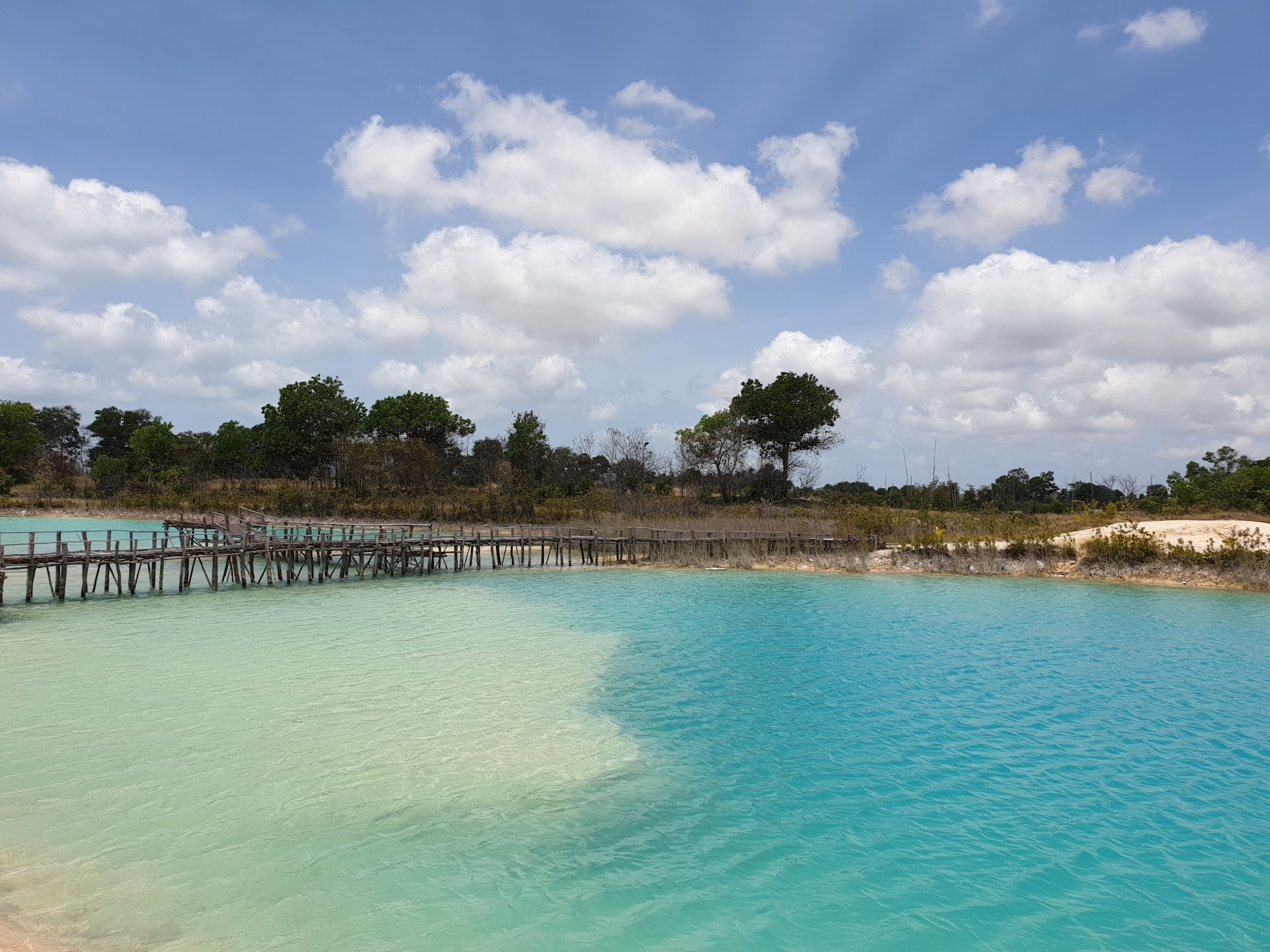 Gurun Pasir Bintan or the Bintan Desert is actually an area of bauxite mining waste and the remnants of ex-digging holes left behind by miners. Year after year the place is exposed to rain and heat making it a desert and some lakes with turquoise water. Inadvertently this place eventually became a tourist spot because of its uniqueness.