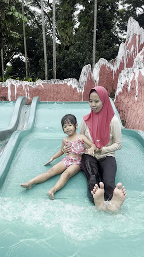 The place is located in residence area not too far from Bogor toll exit. Entrance fee is IDR90k (or IDR120k for high season). there is IDR25k for deposit which you can refund at the end of your visit. It has spacious area for both kids and adults. Thera are at least 3 big slides which I remember. There's also hot water pool, unfortunately it is not so big and crowded. There are many food stalls inside so you can take meal break during your play time. Bathroom is okay, clean. oh yeah, you can rent swimming float for 30k (single) or 40k (double) for 3 hours. very useful for Lazy River ride.