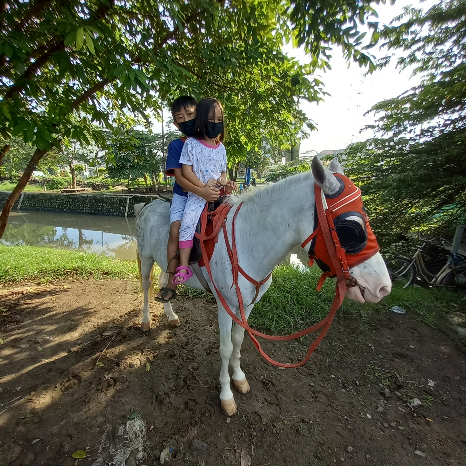 Pada hari minggu pagi,, di taman ini juga ada kuda poni dan delman yang siap mengantarkan kita berkeliling area taman, disekitar area taman pun banyak sekali para PKL yang berjualan beraneka macam barang, mulai makanan, baju, sepatu, tas, kerudung, dll.
