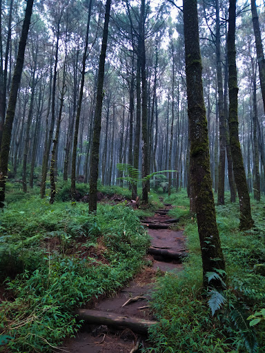 Dari pos perizinan, pendaki akan menempuh perjalanan setapak yang cukup landai dengan suguhan hutan pinus.