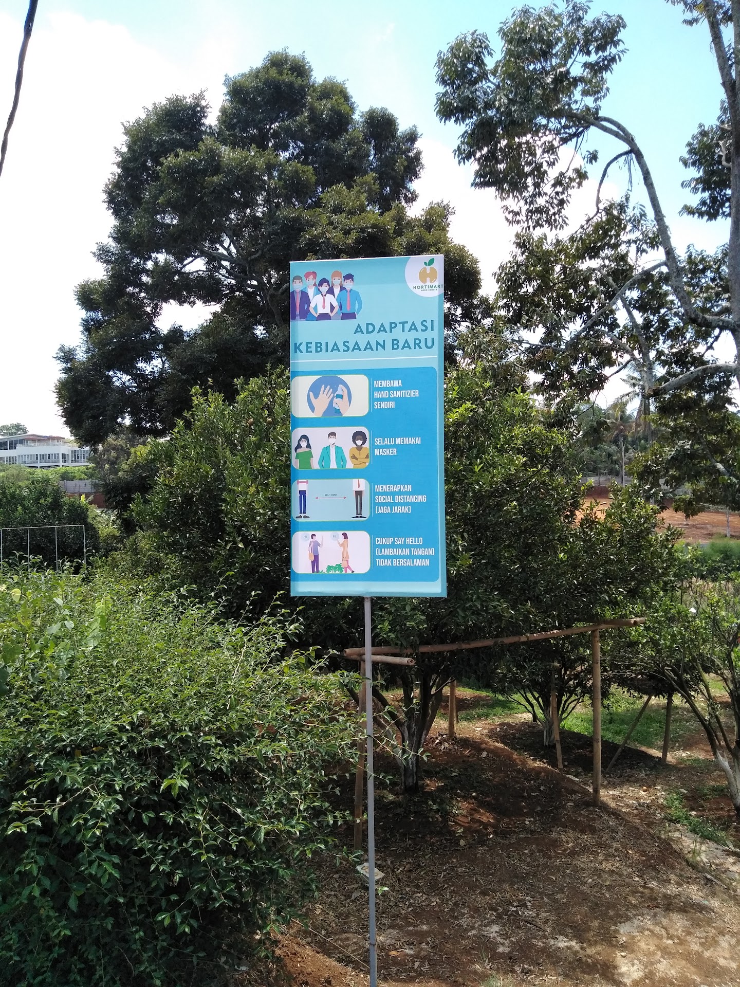 pemandangan cantik Hortimart Maka beliau mendirikan Hortimart Agro Center ini di atas tanah seluas 25 Hektar. Awalnya, tempat ini hanya untuk lahan perkebunan dan budidaya tanaman terutama durian. Tapi, lambat-laun kemudian berkembang menjadi wisata agro seperti saat ini.