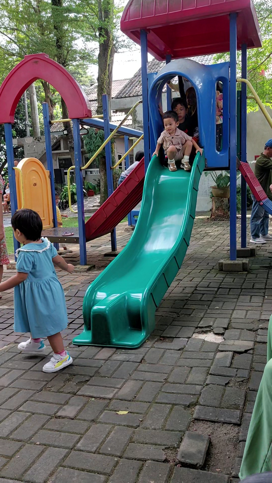 First time kesini, akses masuk ke dalamnya agak susah ya karna berada di dalem komplek perumahan dan 1 jalur aja, jadi kalo ada 2 mobil harus gantian lewat untungnya ada beberapa orang yang bantuin. Parkirnya lumayan gede bisa buat beberapa mobil dan motor. Kesini pas minggu siang, lagi ada kegiatan melukis anak2, no htm alias gratis dan free. Tiap minggu jam 10 pagi selalu ada acara untuk anak2. Playgroundny hanya ada 1 perosotan aja dan harus gantian padahal banyak anak kecil yang pake. Areanya semacam taman gitu, padahal luas tapi sepi kalo pas lagi gak ada acara apalagi pas weekday pasti lebih sepi lagi. Musholla dan toiletnya lumayan bersih, tempat makannya banyak pilihan dan harganya pun relatif normal dan gak mahal2. Sampingnya ada beberapa juga yang jualan kaya warung jajanan dan ada beberapa gerobak dagang kaya siomay batagor dan tahu gejrot jga. Recommended kalo mau cari tempat ramah anak, dan adem. Gratis lagi, gak ada biaya masuknya. Paling hanya...
