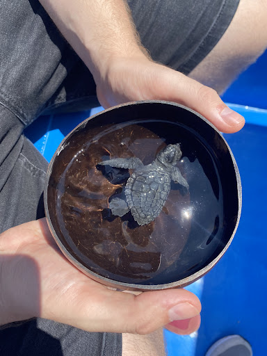We adopted a turtle. We named it Moon Pie. One turtle is idr 150.000,-. They will be released back to the sea by the staff and you will get certificate with your name and your turtle on it.