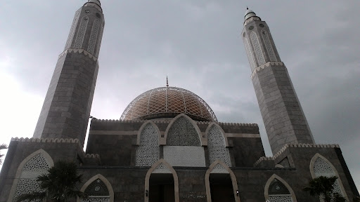 AKSES & TEMPAT PARKIR Akses menuju lokasi masjid ini sangatlah mudah, karena tepat berada di tepi jalan raya utama dan pertigaan exit tol bandar. Yang susah, bahkan sangat buruk dari akses masjid ini adalah aksesnya menuju ruang shalat. Tangga di bagian timur terlalu ekstrim. Tangga di barat juga kalau siang bisa untuk masak telor dadar dan memanggang kaki! Untuk tempat parkirnya sendiri cukup luas, bus bisa masuk. Tapi kalau siang hari gersang & panas karena minim pepohonan.