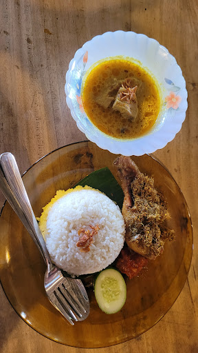 The foods are somewhat authentic Malang and some normal menus for meat such as (ribs soup, grilled ribs soup). I order a package of sayur lodeh with fried chicken on the side. The sayur lodeh is similars to a raw jakcfruit soup from sundanese (a bit spicy for me) and the chicken is fried nicely with herbs seasoning of galangal topping. Yes galangal instead of fried coconut shred (serundeng). I do enjoy the drinks which a bit modern style (mocktail) and you should order their banana fritters.