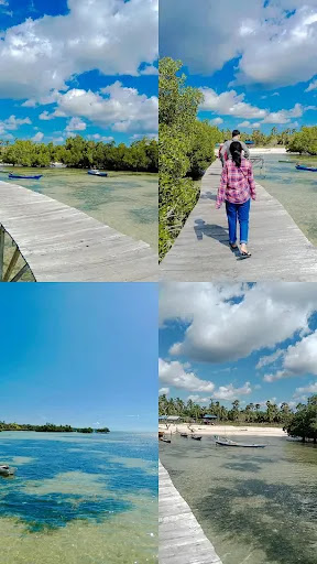 Pantainya indah, pasirnya lumayan bagus, pohon pohon bakaunya (Mangrove) banyak, untuk acara gathering dan camping bisa.