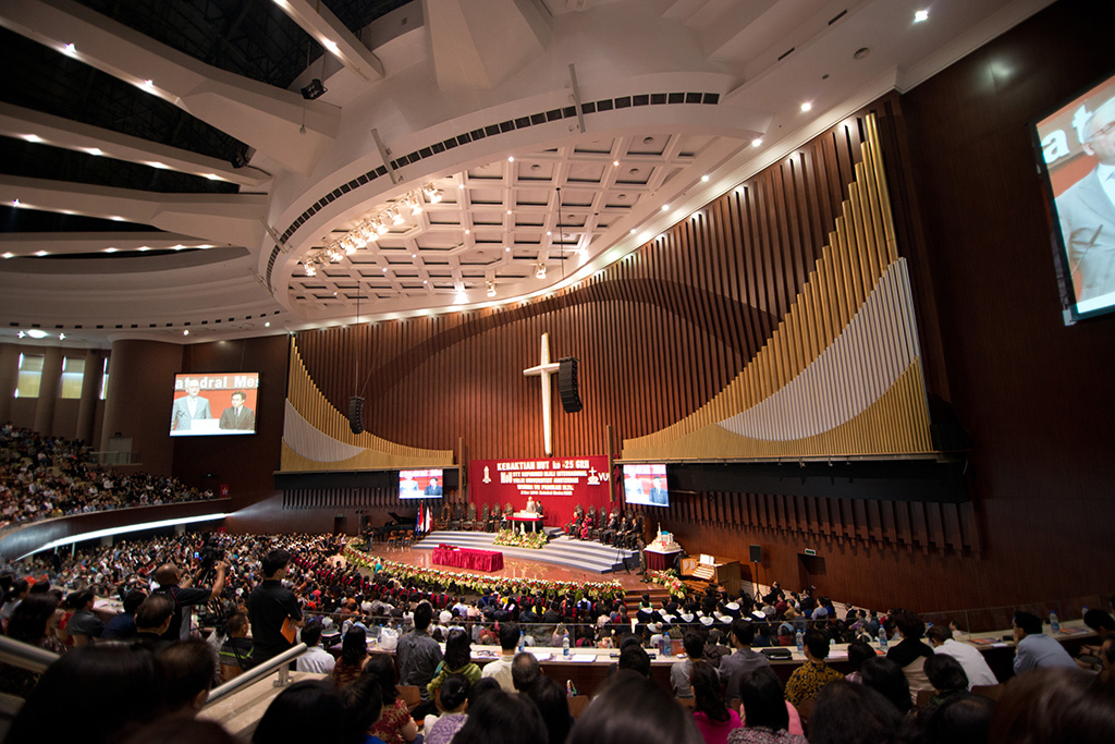 Kualitas audio visualnya kelas dunia, dirancang seperti concert hall internasional. Akustik ruangan sangat sempurna, membuat suara musik dan khotbah terdengar sangat jernih di setiap sudut.