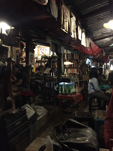 People who come here often find for unique and antique things and I think it's a place for some independent communities, such as music and literature communities, I'm not sure about it though but I was just guessing from the book collection it has. It's really great at day with the sun comes up and shades the place with trees' shadow. But I came here at night, raining, not too recommended coming here when it's raining, 'coz it makes the floor wet and the water's in every corner of the place. Still, it's very recommended for you who love to experience different side of luxurious Jakarta!...