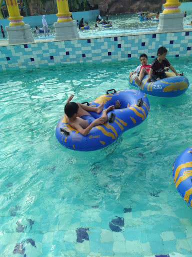 Read moreDari hasil browsing, gambar tempatnya kelihatan bagus, tapi setelah coba main kesana biasa saja, tempatnya agak susah dicari kalau gak pakai google maps, saya uraikan pengalaman saya disana, Ke-1 : Saya beli 3 tiket, kirain anak yg paling kecil tidak dihitung, ternyata diatas 80cm sdh dihitung.Ke-2 : Saya tanya ada tempat sewa baju renang, tidak ada kata petugasnya (jadi jangan lupa bawa dr rumah). Ke-3 : Sewa Loker, Lokernya pakai koin, dan ingat hanya bisa dibuka sekali saja, sialnya kmren dompet ditaro di tas, dimasukkan ke loker, ehhh, pas lagi main air anak mau belanja, kagak bisa beli akhirnya. (ternyata ada gelang buat isi cash, jadi belanjanya cashless, uang jaminan 30rb, jd kalau isi 100rb hanya bs dipakai 70rb). Ke-4 : Kolamnya yg keliling dibawahnya banyak keramik yg copot, sdh ditambal pakai semen, tp sungguh kasar, kaki klo diseret selalu kena jari kaki dan sakit banget. Ke-5 : Sewa Ban, ban yg sdh disewa harus dijaga baik2, kalau gak bs diambil org, pas kemarin saya temanin anak main di kolam anak, bannya saya taro di kolam anak kata petugasnya gak boleh, saya disuruh taro di pinggir, pas anak main sana sini, ban gak ada yg jaga, pas mau pakai eh lenyap. Ke-6 : Kebersihan lapangan : ada beberapa tempat yg sangat kotor, klo dibilang genangan air sih okelah, tapi ini sampai berlumpur setinggi 2cm lebih, apa gak ada petugas kebersihannya? Ke-7 : Ini yang bikin kesel, air untuk bilas kagak keluar, jadi kmren nunggu hampir 30 menit pas mau bilas. Ke-8 : mungkin nilai plusnya ada di kolam ombak, tp jgn terlalu dekat krna ombaknya terlalu ganas, saya lihat beberapa orang Bannya terbalik, saya gak ikut main krna Bannya gak ada, diambil org. Sekian Reviewnya semoga...