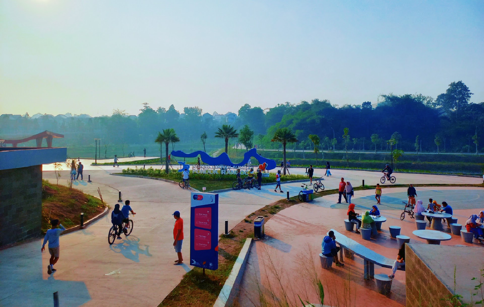 Read moreBaru aja pulang dari sini. Hari Minggu ruameee bangetttt, kalo hari biasa sepi, tempatnya luas, ada spot buat duduk2..ada jembatan panjang..ada sewaan sepeda, 5rb/jam/sepeda..tadi nyewa 2, yg satu sepeda gede ada boncengannya..yg satu lg sepeda anak..bapaknya baik, dibolehin nitip bawaan (bawa sepatu roda + skuter, tp anak2 malah mintanya main sepeda). Ada orang jual makanan juga, di dalam maupun luar. Sekilas ada toko kelontong (beli pocari & susu milku dsitu). Ada yg jualan pecel & es teh manis, ada jualan salad buah, ada yg jual pop mie juga..bakpao karakter.
