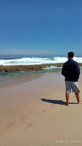 The beach view here is quite spectacular, with high waves, soft white sand, clear enough water and close to the river mouth which is the border of Blitar Tulungagung Regency. I really enjoy this beach even though it is not possible to swim because of the waves. But I can still lie in the mouth of a very clear river. And playing water in the mouth of this river is quite safe, because the water is shallow. The mouth of this river is also safe from waves, because there are rocks blocking it.