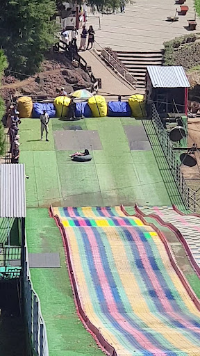 Read moreRainbow Slide adalah tempat bermain atau wahana bagi anak anak.mauoun orang dewasa beberapa wahana yang dapat dimainkan diantaranya adalah seluncuran atau slide. Mungkin karena seluncurannya berwarna warbi maka diberi nama rai bow slide. Seluncuran terdiri dari 2 yang sangat tinggi dan panjang dengan yang pendek. Yang pendek sepertinya dikhususkan untuk anak2 kecil. Namun untjk seluncuran yang tinggi dan panjang dapat dimainkan oleh remaja mauoun orang dewasa. Pengguna akan menaiki bantalan ban yang meluncur dari seluncuran paling atas hingga paling bawah. Seluncuran supaya licin disemprotkan air sehingga pada saat meluncur kadang kita akan terkena cipratan air meskulum tidak banyak. Wahana lainnya yang ada diantaranya menaiku kudang yang akan mengikuti jakur yang sudah disediakan. Rainbow slide ini sebenarnya berada dalam satu komplek temlat wisata...