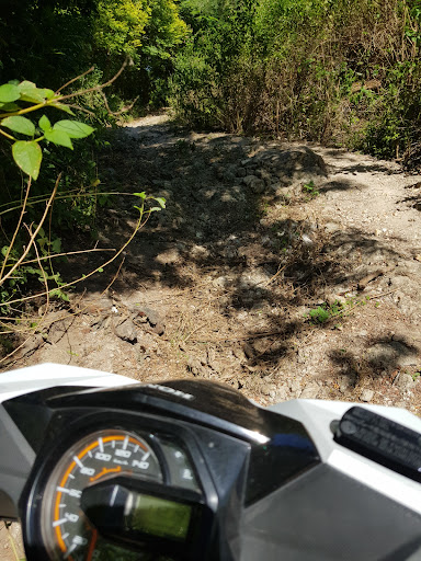 The road leading to the beach is very good except for the last 600 meters. If you still decide to come here, leave the bike where there are still roots, except if you're having a cross bike. Otherwise you won't make it back, there are stone steps you can't make up with a scooter anymore without...