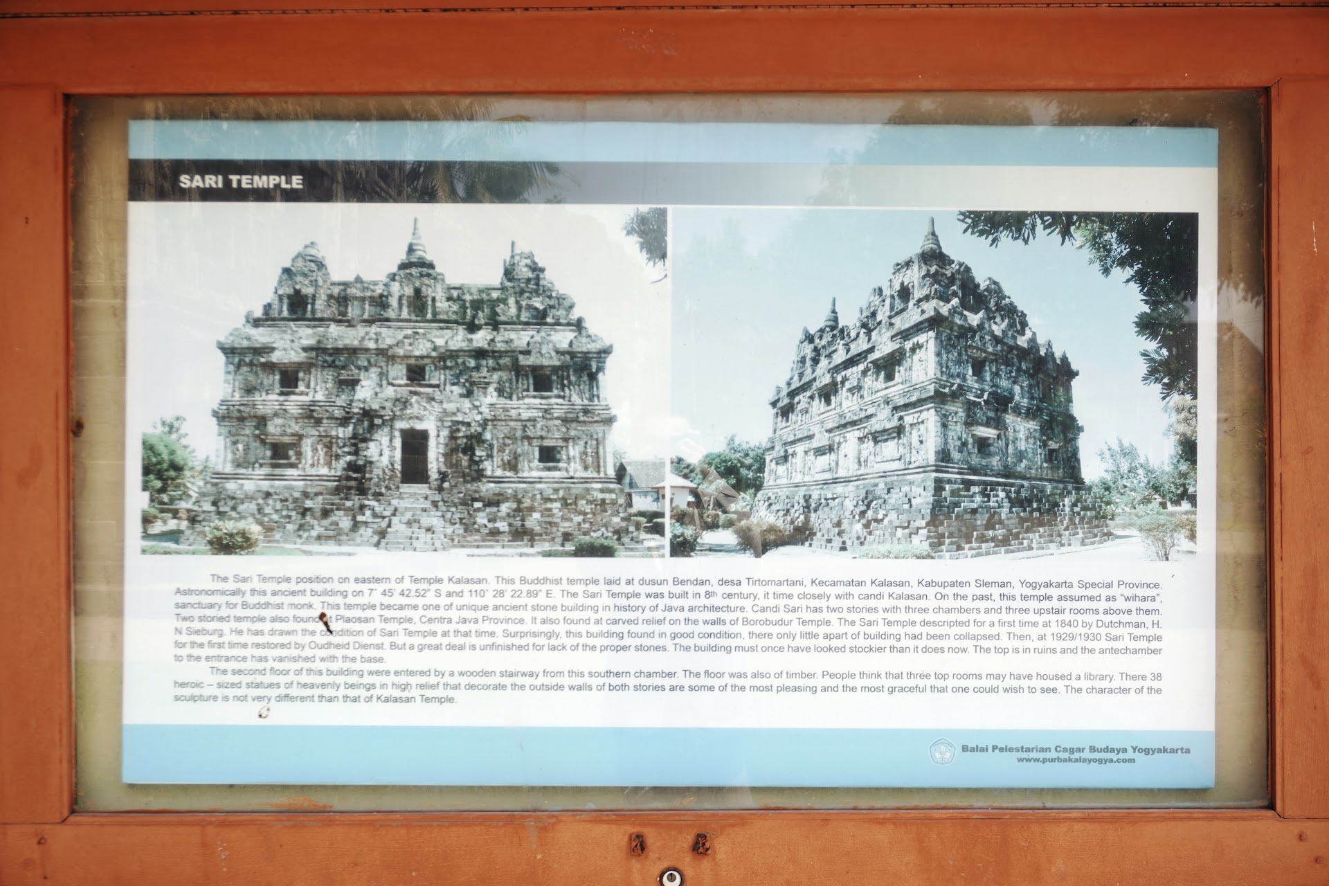 Sari Temple is the first Buddhist temple together with Kalasan Temple that built in the Ancient Mataram Kingdom area (later become Special Region of Yogyakarta and Central Java) around 8th AD Classical Javanese Period.