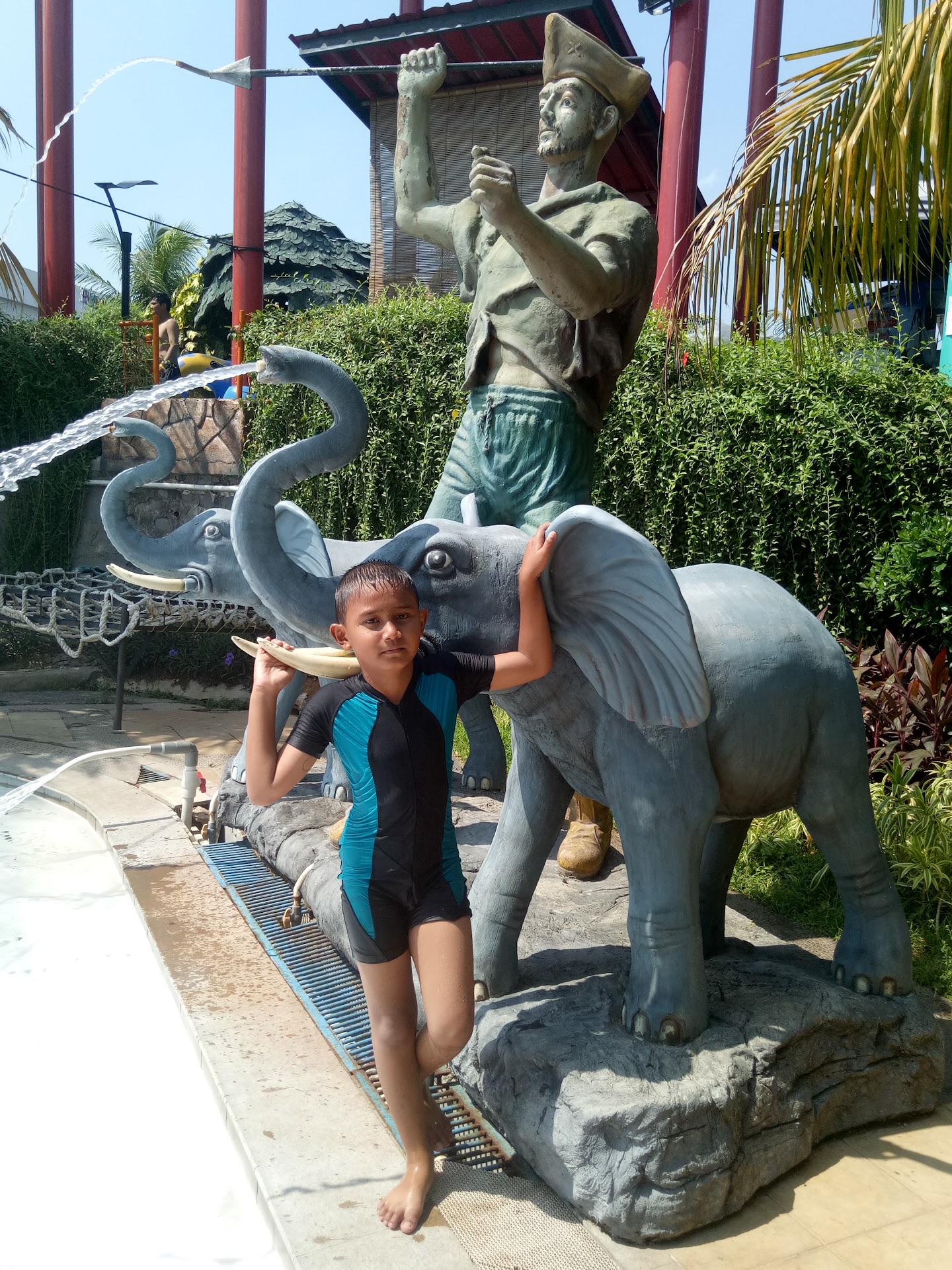 Tepat pukul 08.00 pagi, kami berangkat dengan anggota keluarga menuju wonderland ini. Terlebih dahulu kami cek di google map dan alhasil kami menggunakan route jalan biasa karena jalan Tol sepanjang Cibitung-karawang kondisinya merah alias padet merayap. Perjalanan sekitar 1 jam, jam 09.00 wib kami memasuki area parkir. Oh ya lokasi tempat bermain air ini ada di Karawang tepatnya di Galuh Mas, sekitar kurang lebih 2 km dari pintu tol karawang barat. Harga tiket lumayan menguras kantong karena saya dateng pas tanggal merah alias libur nasional yakni 90 rb per orang. Diberi tanda gelang kuning sebagai alat masuk. Sebelum pulang gelang tersebut dikembalikan ke kasir dan kita mendapat pengembalian uang 20 rb. Kebetulan saat itu kami datang berlima. Saya pikir bisa menggunakan kartu kredit tetapi ternyata transaksi hanya bisa dg menggunakan debit mandiri dan cash. Fasilitas di dalamnya lumayan banyak, ada kolam ombak, lazy river, perosotan, kolam anak, kolam busa, gazebo, locker, kamar mandi, kamar ganti, ruang bilas dan tersedia juga ruang P3K serta ruang menyusui. Bagi pengunjung penderita cacat lumpuh di sini juga disediakan kursi roda beserta fasilitas jalannya. Lumayan banyak tempat duduk yg disediakan ada yang gratis dan ada yg berbayar. Sewa loker 30 rb dan utk sewa ban double besar seharga 55 rb, tetapi setelah kita kembalikan ban tersebut nanti kita mendapat pengembalian 20 rb dengan syarat max 3 jam pemakaian, jika melebihi 3 jam maka pengembalian 20 rb akan hangus. Selain fasilitas di atas, disini juga ada live music. Pengunjung juga boleh request lagu ataupun ikut joged. Saya rasa tempat ini sangat cocok bagi anak anak, selain banyak area bermainnya, tempatnya juga bersih. Utk harga makanan masih terjangkau tapi pasti lebih murah kalo makan dirumah kita hehehe... Saat itu kami makan mie rebus telor 15 rb, nasi goreng telor 20 rb, Pop mie 10 rb, air mineral 600 ml 10 rb, teh hangat manis 5 rb. Intinya utk sekali trip ke sini dg member 5 orang maka harus bawa minimal 1 jt, itu sudah termasuk bensin. Demikian review dari saya dan silahkan bagi yg ingin berekreasi...