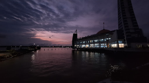Masjid Al-Alam benar-benar ikon Kota Kendari yang wajib dikunjungi! Lokasinya yang seolah berada di tengah laut dengan akses jalan tunggal yang diapit air di kanan kirinya sungguh memberikan pemandangan yang spektakuler. Saya datang ke sini pada Sabtu pagi untuk jogging, dan ternyata banyak juga pengunjung lain yang berolahraga. Suasana di luar masjid sangat ramai dan hidup. Area parkir juga sangat luas, jadi tidak perlu khawatir mencari tempat. Ada warung-warung kecil yang menjual makanan ringan dan minuman, sangat membantu setelah berolahraga. Bahkan, ada fotografer yang siap mengabadikan momen Anda dengan latar belakang masjid yang indah ini. Di dalam masjid sendiri, saat saya kunjungi memang sepi karena bukan waktu salat, sehingga bisa merasakan ketenangan dan keagungan arsitekturnya. Satu hal yang sangat disayangkan adalah banyaknya sampah pengunjung yang berserakan, meskipun tempat sampah sudah tersedia. Semoga ke depannya kesadaran pengunjung untuk menjaga kebersihan bisa meningkat, agar keindahan Masjid Al-Alam tetap terjaga. Secara keseluruhan, Masjid Al-Alam adalah destinasi yang memukau dan layak dikunjungi, baik untuk beribadah, berolahraga, atau sekadar menikmati...