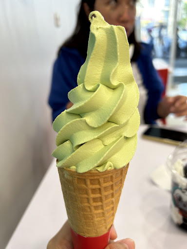 Untuk ice cream conenya, disini tersedia dua pilihan rasa. Vanilla dan Matcha. Jujur untuk vanillanya tidak sesuai selera saya. Tapi kakak saya mencoba yang matcha dan rasanya cukup enak. Untuk satu porsi ice cream cone ini dibanderol dengan harga 8rb/cone.