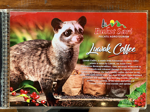 A must try for coffee connoisseurs, at a pop of IDR50k (around zaR60) you get a luwak coffee, with a tasting sample of 15 drinks including herbal teas, coffees and cocao products and a cassava or jackfruit crisp snack. (Labels and descriptions at the end of the reel).
