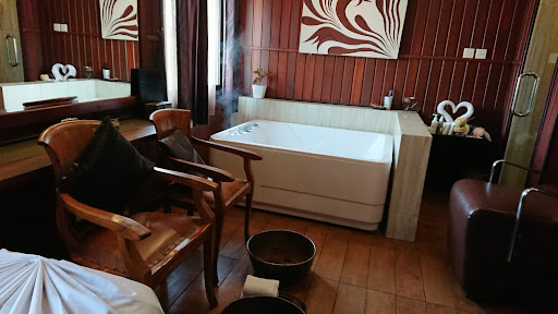 From start to finish, this was one of the most amazing experiences I've ever had in my entire life. They offer a free pick up and drop off service within the areas surrounding the spa. They have several amazing packages that are absolutely worth the value. My fiancee and I were staying at a resort which had a couples spa treatment that was like $400 for only 2 hours. When we saw the price at Frangipani, we knew that we would be getting a better deal. The staff are trilingual (Indonesian, Japanese, and English). We did their half-chakra treatment which was 3 hours long. They included an amazing welcome drink, warm towel, and overview of what would be included in the treatment. We were also allowed to pick the massage oil that would be used during the treatment. They had 15 different massage oils and a printout showing the different benefits of each. We were then lead into a beautifully decorated massage room where there were two bath tubs, a shower, and two massage beds. We were given beautiful silk kimonos to wear before getting ready. Because we booked through the LINE app, we were given a free 15 minute massage where they focused on one area of our choice. I chose the bamboo massage with the focus on my shoulders. It was a nice lead in to what would come next. 60 minute Balinese massage with professional masseuses who knew exactly what they were doing. We then received a 45 minute hot stone massage, followed by a 45 minute facial. Then, we were given a rose petal filled tub for 30 minutes. They even spelled our names with different colored rose petals. It was truly an amazing and deeply relaxing experiences. I highly recommend booking with them. They mostly cater to Japanese customers and I went with my Japanese fiancee, but I think their English is good enough to help anyone! If you're looking for a truly relaxing spa with incredible service from start to finish, look no further...