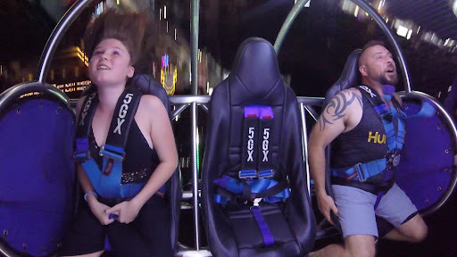 This particular ride is much, much more powerful. My partner was very nervous, to the point of wanting to back out just after strapped in. But a few seconds later screaming with pleasure.