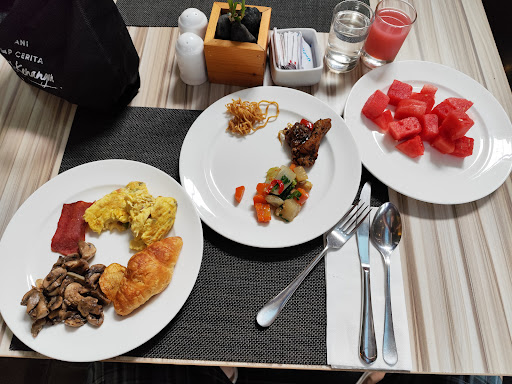 The breakfast tastes standard and can be enjoyed, only the variants in my opinion are very standard for the Hilton class. There were those on the last day because it was accompanied by a government meeting, the food ran out very quickly and the refill was slow, it was a bit disappointing The menu: Noodle station, fried rice, fried noodles, porridge, wrap, muffin, bread Eggs, chicken black pepper, tofu sambal, capjay, pastry, waffle, pancake, sandwich Cereal, green bean porridge, salad, cold cut, cheese, yogurt, fruit, coffee, juice Mushroom, potato, egg,...