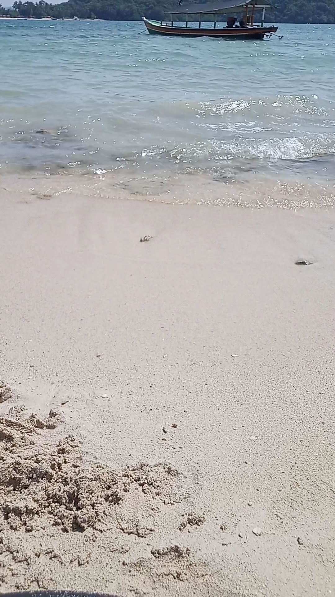Ombak lumayan kenceng, pasir kek biasa ga bisa dimakan ya gess meski halus bed kek gula pasir