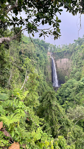 We read some comment about this waterfall saying it is for free. At the time of our visit it was 20.000 entrance fee which is fair because they installed a very lovely and well prepared path to a viewpoint (first picture). Everything is very new and well maintained. It is build into the nature. After the viewpoint to go down to the right side over a little wooden bridge before turning left and walking through the riverbed to the waterfall. Be careful: you have to walk through the river twice - but it was only about 20cm deep. The guides even accompanied us to the waterfall because it started to rain, they were so levely and helpful with information and taking pictures. We were the only ones there! Best part: they showed us some fruits we could eat and ginger roots right next to the path.