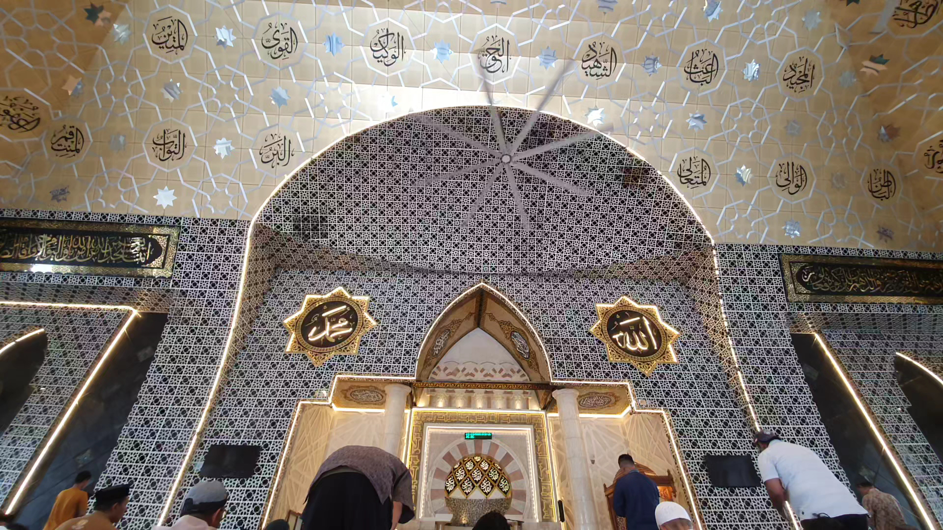 Di dalam, tampak mihrab dengan, bentuk yang sangat menarik. Bagian atas mihrab seluruhnya berhias Asma’ul Husna. Menurut tim arsiteknya, ini terinspirasi bentuk khas ornamen arsitektur di...