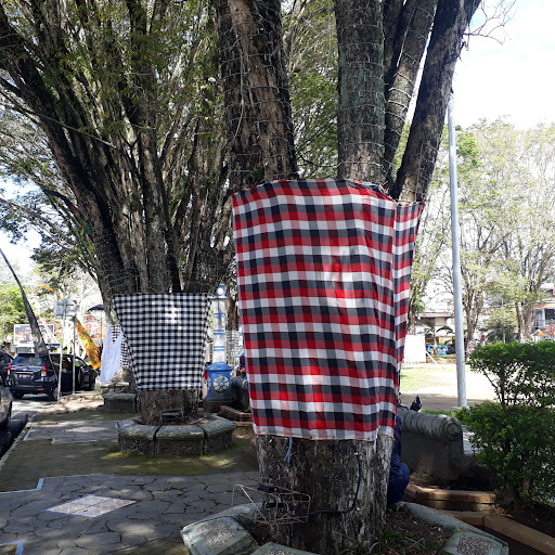 Public area front of the Manado Mayor's office. People can do jogging and doing some exercise here everytime. We can sitting on the bench too here for relax under trees. The Manado government decorates this area with ornaments about religious feast. Today is the Seclusion Day of Hindu, so we can see the ornaments and it looks like Bali Island. I think...